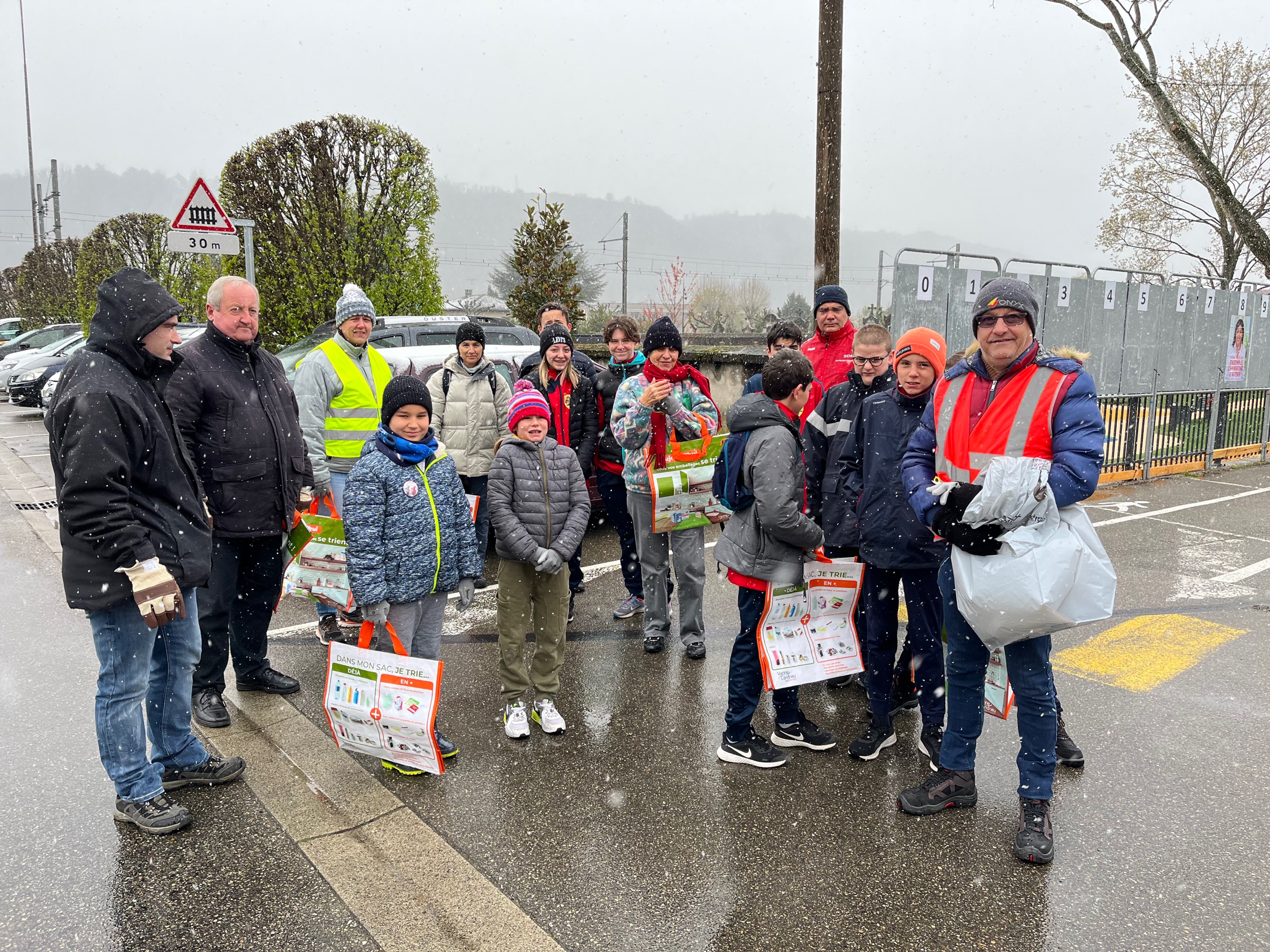 La météo hivernale n’aura pas eu raison de la détermination de la vingtaine de bénévoles venus aider nos jeunes conseillers et braver la neige et le froid.