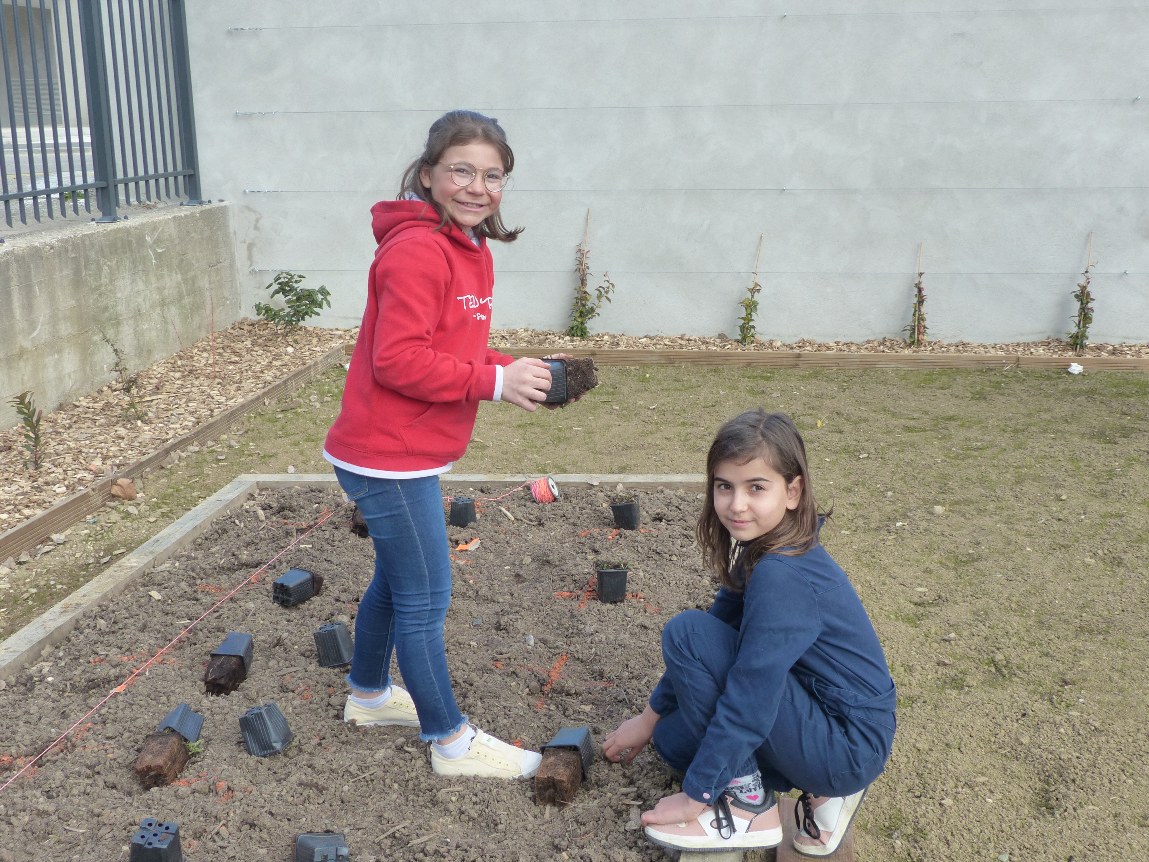 Vendredi 10 octobre 2022, les enfants du CME sont allés planter des épinards, de la mâche et des pensées avec des bulbes dans les bacs de la cour de l'école. Les plantes sortiront au printemps prochain.