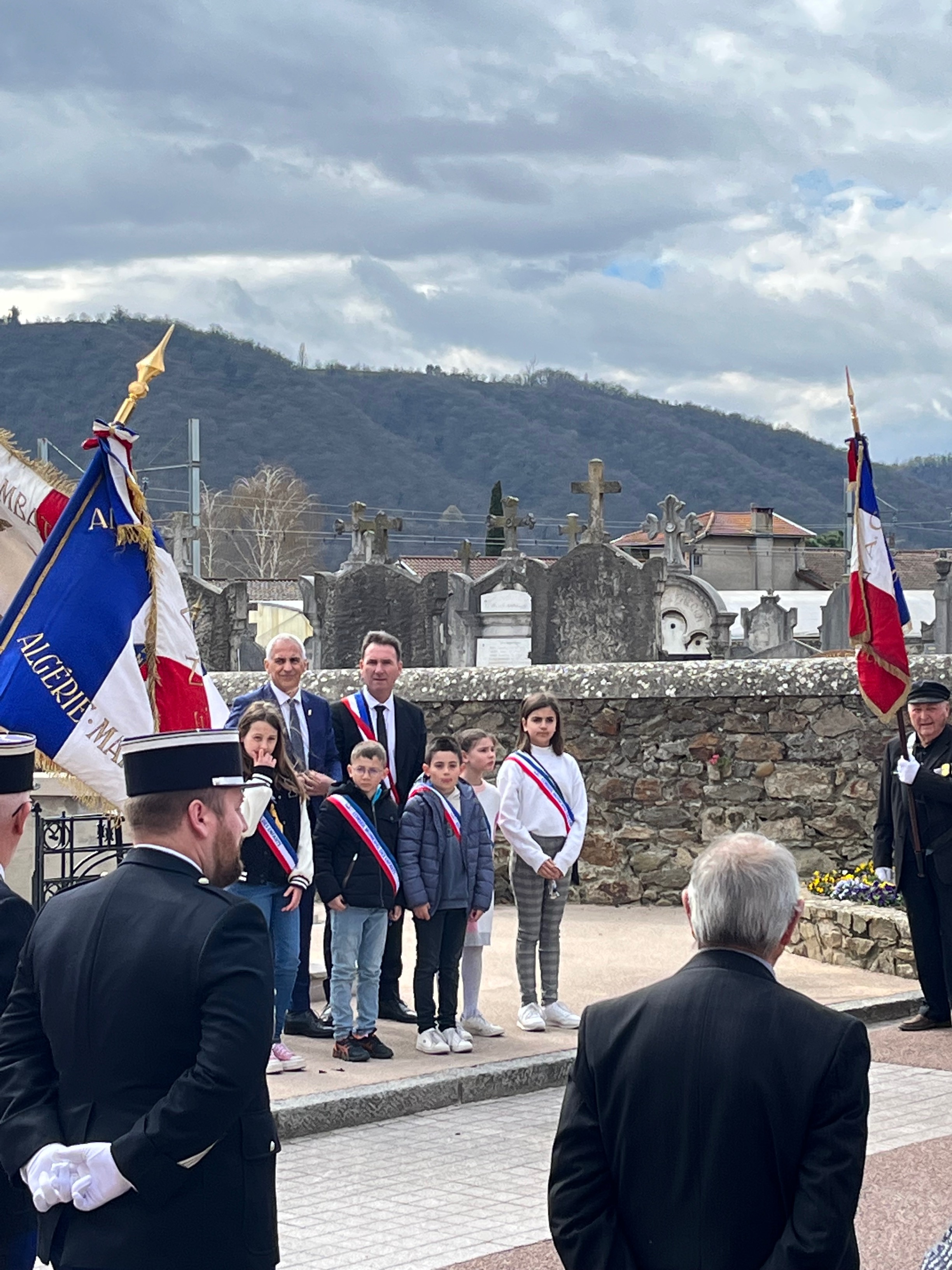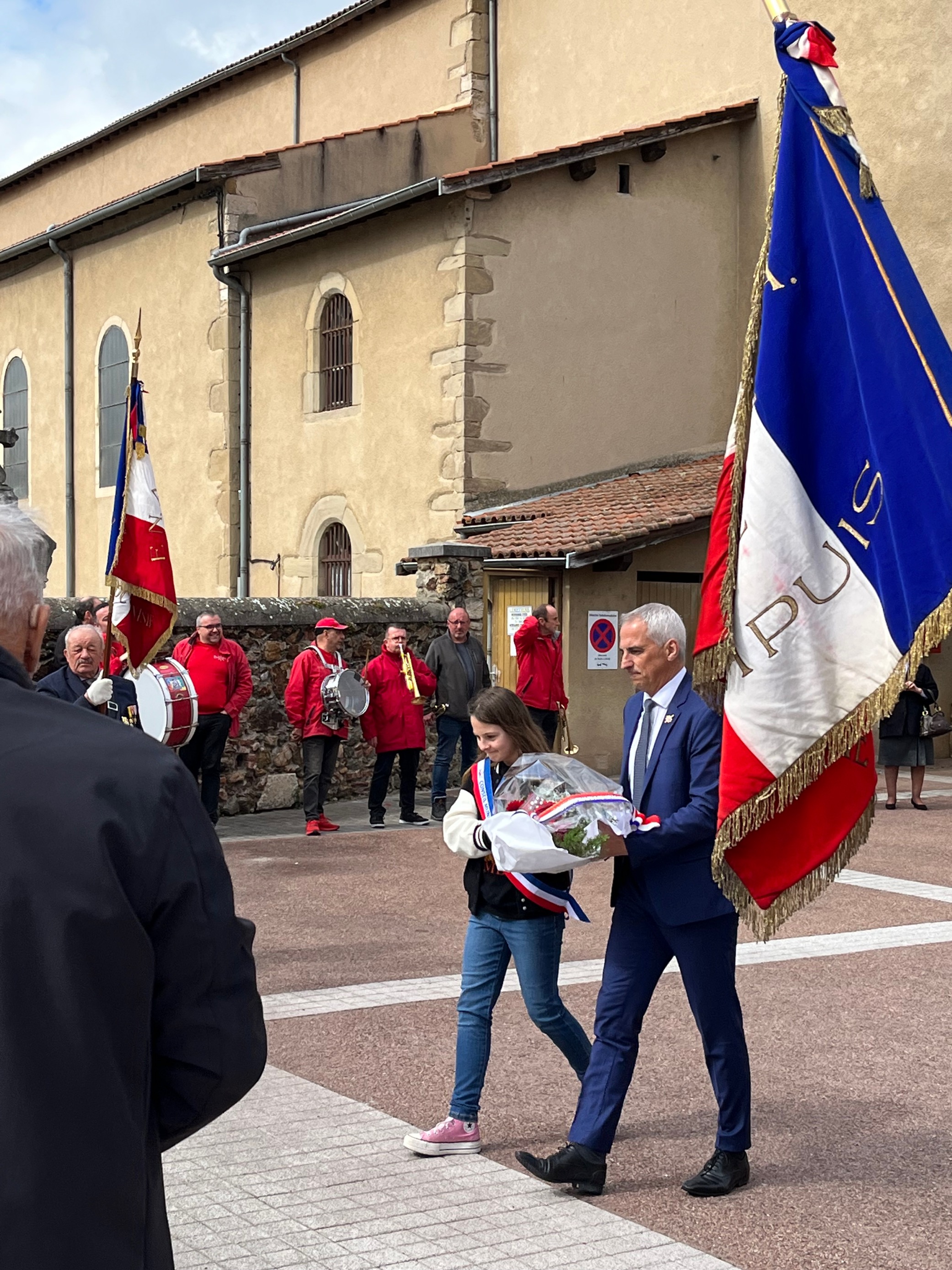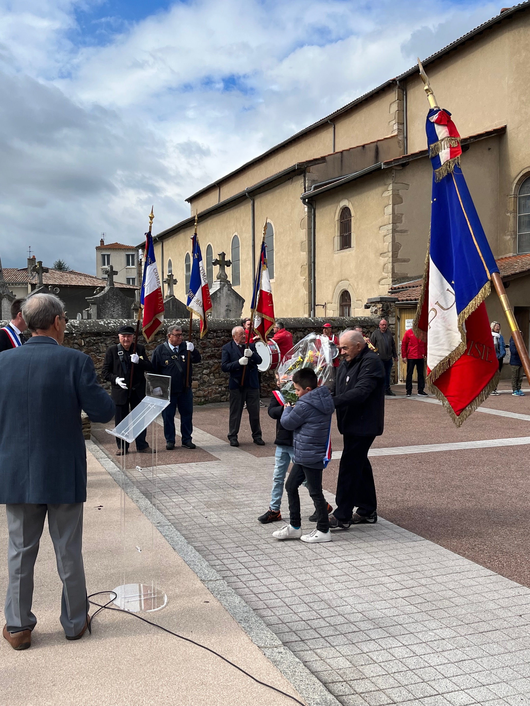 Ce moment solennel a été l’occasion pour les élus de remettre un nouveau drapeau à la section de la FNACA d’Echalas, et pour les enfants du Conseil Municipal de déposer des gerbes de fleurs en hommage aux victimes de la guerre.